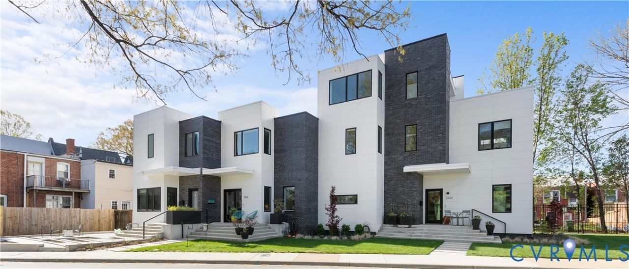 ARCHITECTURAL GEM designed by Richmond architect Walter Parks situated minutes from Fountain Lake in beautiful Byrd Park Walk to Cary St, Main St, Maymont, the James River, VCU, VMFA, the Fan and Museum districts and many of RVA's best restaurants 2406 Grayland Avenue offers all this in a modern design with clean lines!! Inside, the open-concept first floor blends style and function with wide-plank hardwood floors, 10ft ceilings on the first floor, recessed lighting, shades, and abundant natural light from the many well-placed windows. The living area is anchored by a stunning full-height tile surround gas fireplace and custom asymmetrical shelving, while the open staircase with wood treads and double modern metal railing adds an extra architectural element. The kitchen is equally impressive, featuring flat-panel cabinetry with beautiful burled walnut flat front cabinets below with crisp white uppers, Quartz countertops, a contemporary tile backsplash flanking a stunning rectangular picture window, and a deep undermount sink with a gooseneck faucet. The oversized island offers seating, additional walnut cabinetry with pull-out shelving, and a gas cooktop with a statement glass-and-stainless range hood above. A convenient half bath and additional storage round out the first floor. Upstairs, a skylit hallway enhances the home's airy feel along with 9ft ceilings! Two bedrooms with custom closets share a stylish Jack-And-Jill bath while the primary suite offers its own custom walk-in closet, space for additional seating, and a well-appointed ensuite-creating a comfortable, private retreat. Off the kitchen is a covered porch with lighted ceiling fan and a custom roll down shade for sunny days and a custom built locked storage for a grill, coolers, gardening tools and more underneath-extending the home's modern design outdoors. Stop by and enjoy this rare offering in one of Richmond's most desirable neighborhoods!
